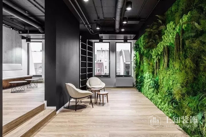大面積的苔蘚綠植墻在設計師的精心營造下,讓人恍若置身童話森林中,帶來無限的遐想。