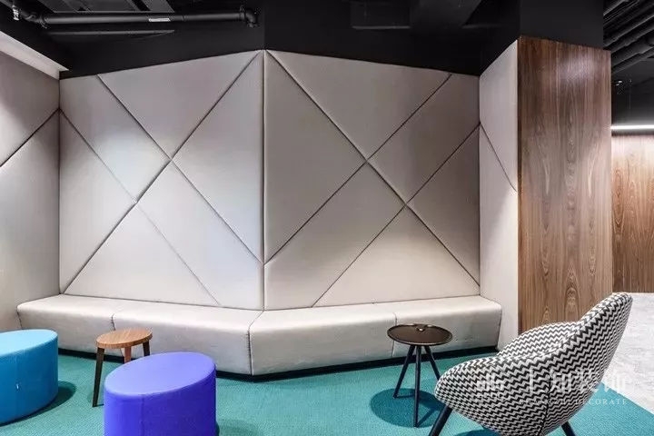 在設計中特別加入了斜面和斜線的元素,讓空間跳脫出方正規矩的嚴肅感,增添了動感和活力。